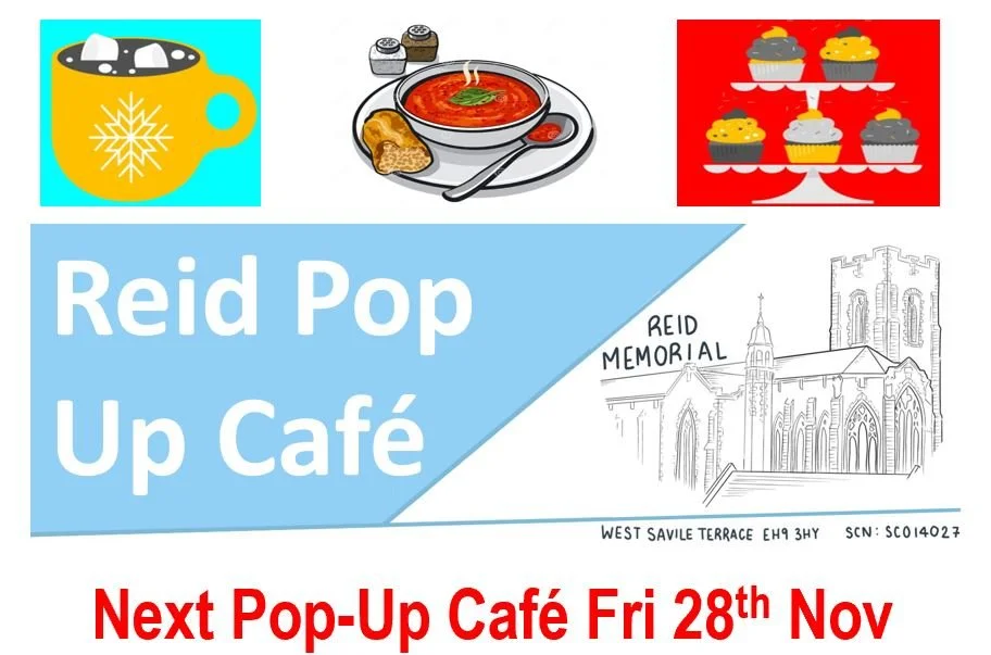 Come along to our POP UP CAFE on Friday 28th NOvember, for teas, coffee, soup, cake or lunch and meet up with friends for a blether.